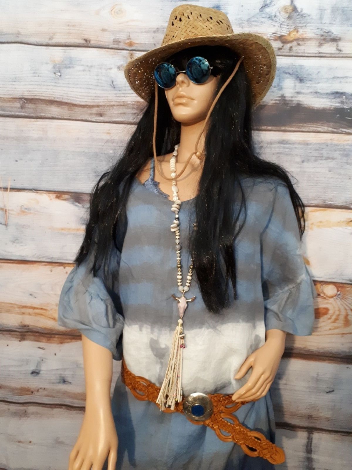 TANIA est une robe longue bohème, hippie chic, oversize en lin Tie and Dye du plus bel effet.