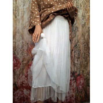 MARIE est un jupon ou une jupe en tulle plutôt droit doublé avec petit volant au bas.