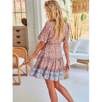 Une bien mignonne robe courte, MARGARITA est un modèle de robe JAASE très frais pour la saison, un décolleté en V, bien élastiquée à la taille pour une jolie silhouette féminine, le bas est évasé et les manches courtes volantées bordées d'un petit galon coton, une ceinture en tissus pour la taille ou à mettre dans les cheveux ... comme l'on veut ;-)
