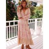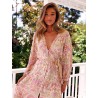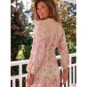 Une nouvelle coupe de la marque JAASE Lindsay robe longue décolleté V entièrement boutonnée sur le devant pouvant aussi se porter ouverte sur un fond de robe (voir fond de robe Marie sur le site) des manches longues qui se resserrent avec un lien coulissant, une ceinture à nouer, un imprimé "Divine" qui est un mix de 2 motifs sur le volant du bas, aux épaules et au haut du dos ce qui lui donne un petit style bohème chic et tendre dans ses tons de roses et de crème. A vous de pimenter son style diverses possibilité s'offre à vous jusqu'au champêtre romantique et chic ;-)