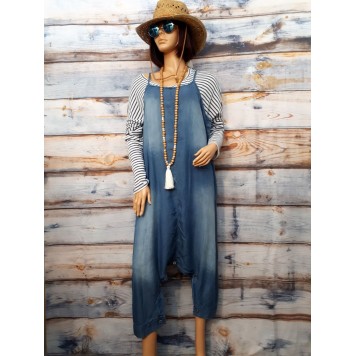 JESS est une salopette sarouel de couleur bleu jean délavé au look très tendance.