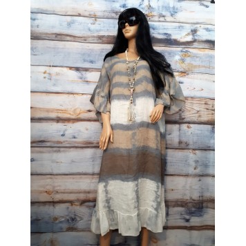 TANIA est une robe longue bohème, hippie chic, oversize en lin Tie and Dye du plus bel effet.