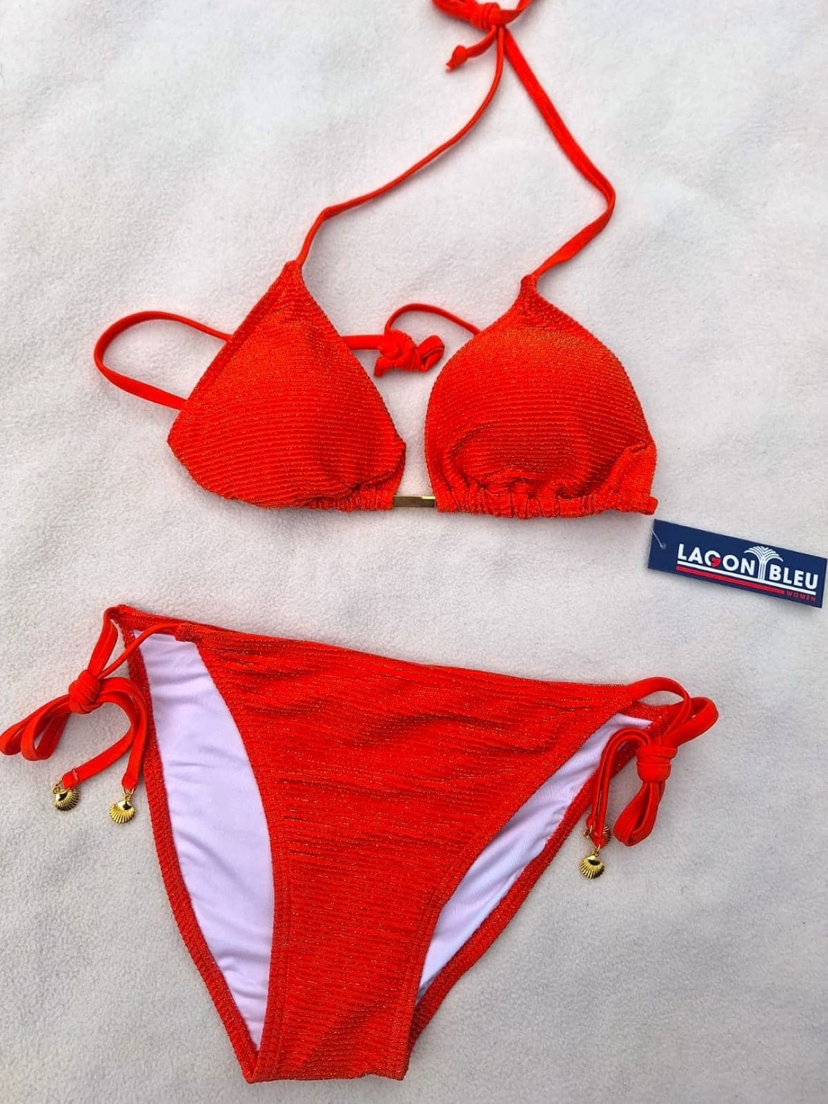 Léa Lurex Gold est un maillot de bain 2 pièces de la marque française LAGON BLEU ici en couleur Vermillon Or